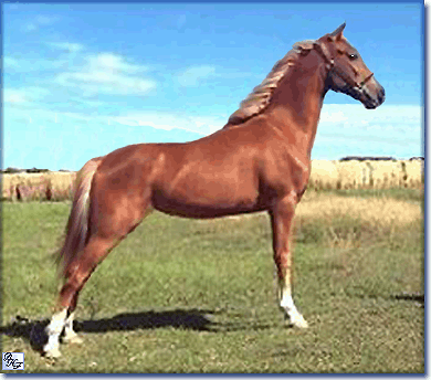 Color: sorrel | Markings: both hind and NF socks, star, strip, mixed mane and tail. |